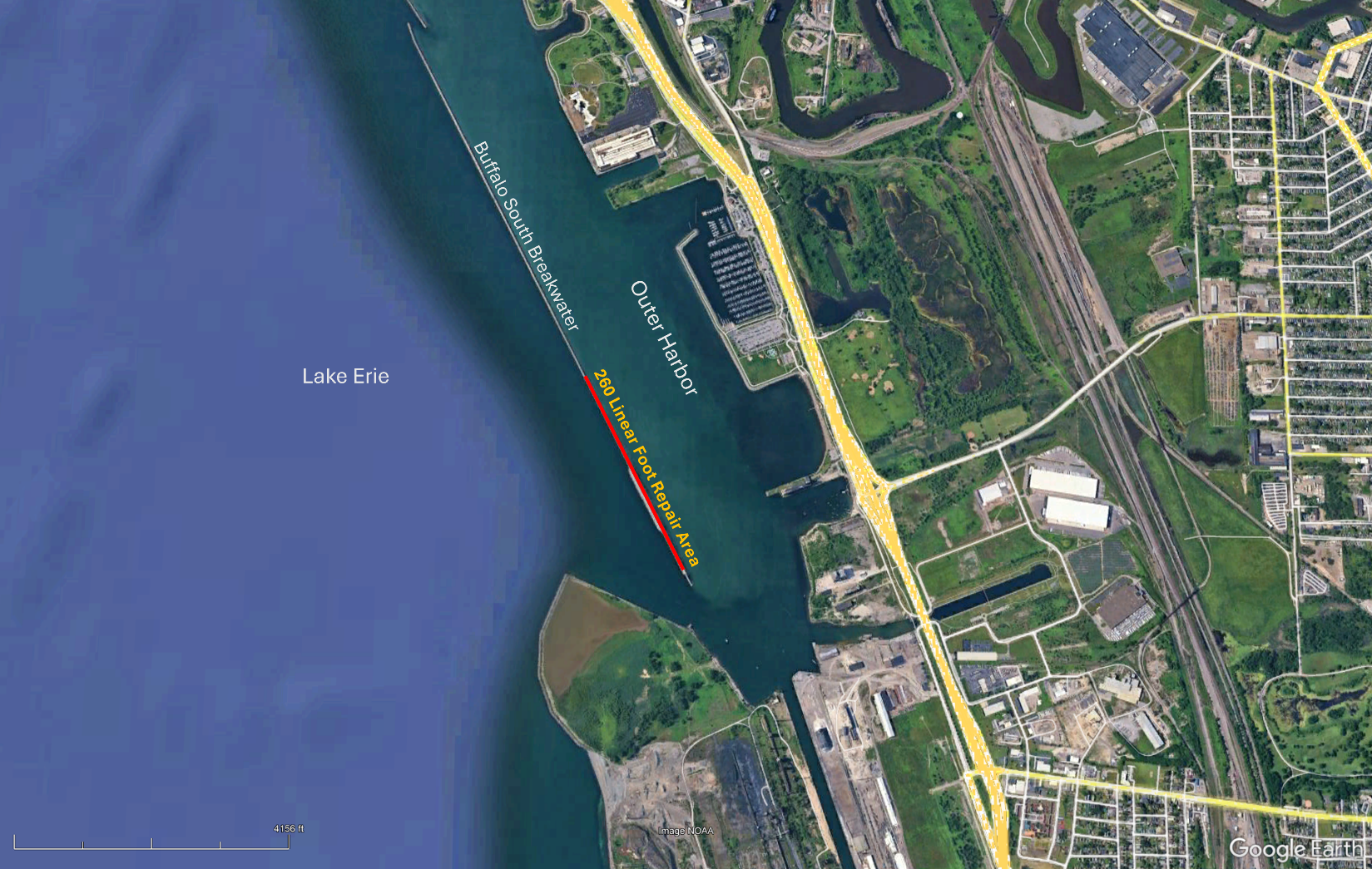 The breakwater is essential to maintaining safe harbor access for commercial ships bringing more than $43 million in business revenue to the region and protecting recreational sites from Great Lakes waves and weather.